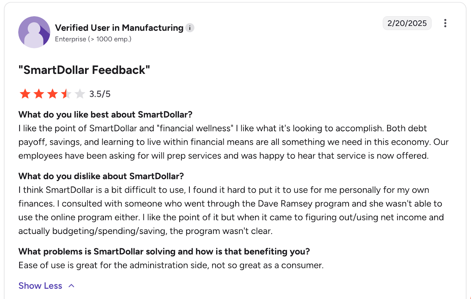 SmartDollar is a recognizable name in employee financial wellness, largely due to its close ties to the Dave Ramsey brand and its clear, structured curriculum. For organizations primarily focused on debt reduction, it can be a helpful starting point.