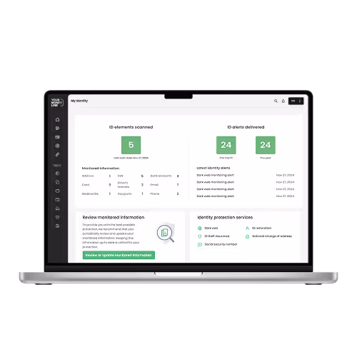 Protect yourself from the stress and financial risk of identity theft with personal data monitoring, free identity restoration services, and $1M of identity theft insurance.
